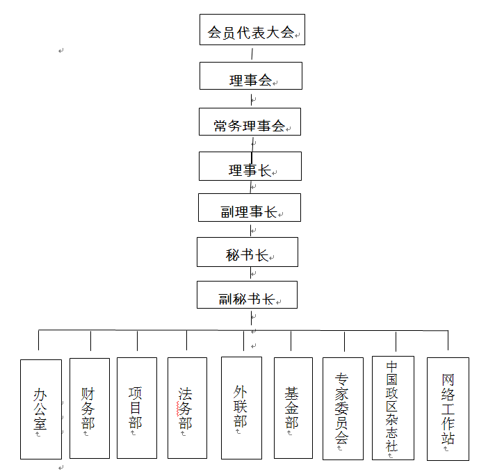 办公室:负责本会工作计划的拟制、呈批与实施;负责本会文件的保管;负责本会的人事调配管理工作;负责会员的入会、退会、除名的相关手续和会员证的颁发、收缴等;负责会员大会、理事会的组织协调工作;负责本会的行政后勤工作。根据工作需要可下设若干机构。