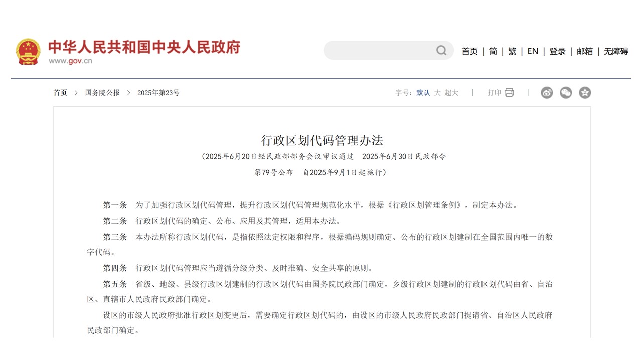 由民政部和国家标准委联合颁布,并于2025年9月1日起施行的《行政区划代码管理办法》(以下简称《办法》),是中国在国家治理体系和治理能力现代化进程中的一项重要基础性制度建设。该《办法》发布后,中国行政区划与区域发展促进会组织专家进行了认真的学习和解读。